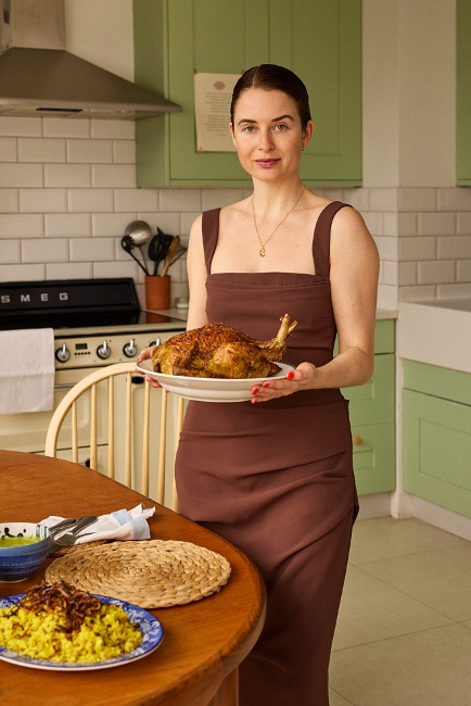 一个宁静的厨房时刻,烹饪准备与优雅的时尚相遇,捕捉了新兴美食时尚运动的亲密本质。图片来源:Stacey O'Gorman,拍摄于巴黎 Georgia 2025。摄影与造型:Raffaella Bichiri