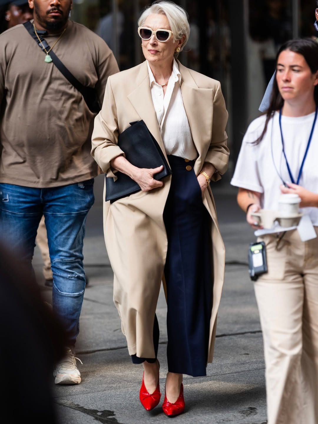 米兰达回来了——安迪也回来了,如今她似乎已经成为了自己的“高层人物”。她们之间唯一的对话来自米兰达(梅丽尔·斯特里普)对安迪(安妮·海瑟薇)的一句台词:“你可真是慢了点。”这句台词暗示了她们可能重新合作,或者迎来最终的对决。然而,值得注意的是,两位主角现在似乎更为势均力敌,安迪展现出一种全新的赋权感——这一观察得到了《GQ Italia》的强调。她们现在都戴着太阳镜,这一细节也绝非偶然。